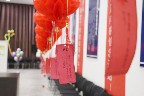 本次元宵佳節(jié)活動共分為7個游戲環(huán)節(jié),分別是猜燈謎、雙人背靠背夾氣球、踢鍵子、套圈、飛鏢、搶水杯、你比我猜。