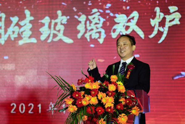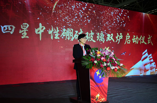 5號窯爐采用的是行業(yè)領(lǐng)先的“全電熔維洛法”熔化拉管技術(shù),實現(xiàn)了從配料到投料、從熔化到拉管、從檢測到包裝入庫的全過程智能化生產(chǎn)。基于四星公司十余年中性硼硅玻璃生產(chǎn)經(jīng)驗的提煉與升華,5號中性硼硅玻璃窯爐集合了第一、二、三、四座窯爐的精華,規(guī)避了原有窯爐的不足,其熔化質(zhì)量較前四座窯爐更具優(yōu)勢,玻管顏色比以前也會有很大的提升與改進(jìn),完全能夠滿足高端客戶的特殊需求。并且,能夠多元化生產(chǎn)各品規(guī)、多用途的中性硼硅玻璃制品。 作為中國醫(yī)藥包裝協(xié)會推薦認(rèn)可的國內(nèi)藥用玻璃包裝制造領(lǐng)域領(lǐng)軍企業(yè),四星公司也是擁有完全知識產(chǎn)權(quán),全部采用自有技術(shù),能規(guī)模化批量生產(chǎn)藥用中性硼硅玻璃的高新技術(shù)企業(yè)。如今,5號窯爐的成功點火對于四星公司意義重大,意味著四星公司在醫(yī)藥包裝行業(yè)又邁上了一個新的臺階。 本次項目啟動由滄州高新區(qū)黨工委書記、管委會主任夏軍主持并講話。 河北省工業(yè)和信息化廳黨組書記、廳長龔曉峰,國家工信部原材料司建材處石琳,國家食品藥品監(jiān)督管理局原副局長張文周,中國醫(yī)藥包裝協(xié)會會長蔡弘,中國醫(yī)藥管理協(xié)會會長郭云沛,中國輕工業(yè)信息中心玻璃技術(shù)信息交流委員會張守和,中國生化制藥工業(yè)協(xié)會常務(wù)副會長胡文言,河北省醫(yī)藥協(xié)會會長劉驍悍,滄州市人民政府副市長尹衛(wèi)江,滄州市工信局局長時金青,滄州市發(fā)改委副主任張國慶,滄州市科技局局長桑金歌等領(lǐng)導(dǎo)出席,滄州四星玻璃的客戶代表及企業(yè)員工代表共同參加了本次項目的啟動活動。河北省工信廳,滄州市人民政府,滄州市高新技術(shù)開發(fā)區(qū)政府的領(lǐng)導(dǎo),行業(yè)協(xié)會領(lǐng)導(dǎo),四星玻璃董事長為點火儀式致辭。