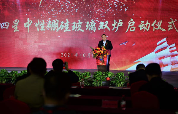 中國生化制藥工業(yè)協(xié)會常務(wù)副會長胡文言在致辭中講到,四星玻璃作為全球大規(guī)模生產(chǎn)中性硼硅玻璃能量產(chǎn)的企業(yè)少數(shù)幾家大概是三家四家企業(yè)之一,掌握了獨到的技術(shù),是我們國家的幸運,是人民的需求。 2021年工信部已經(jīng)確定了滄州四星玻璃是我們國家級的專精特新小巨人企業(yè),四星玻璃為疫苗生產(chǎn)貢獻(xiàn)了數(shù)億支疫苗瓶,成為了民族脊梁,是防治新冠疫情的功臣,是我們的驕傲。滄州四星這個5號,6號窯爐雙爐啟動,也是解決眼門前的這個巨大的需求,為這個需求做出了重大的貢獻(xiàn)。